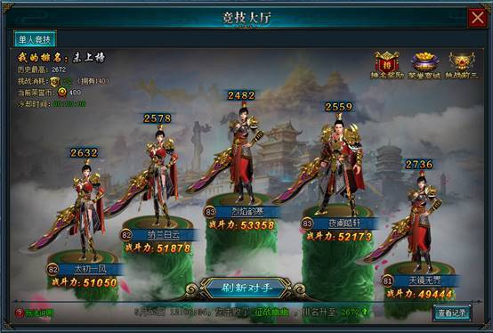 4、 首次挑战历史更好排名,会获得冲榜奖励(大量元宝)