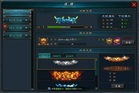 成长成就记录玩家每时每刻的成长,和玩家挑战自我极限的成果战士