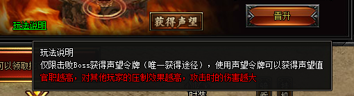 在丽华传奇中,击杀BOSS会获得声望令牌,声望值可以提升玩家属性和官职,并对低阶官职玩家造成额外伤害。