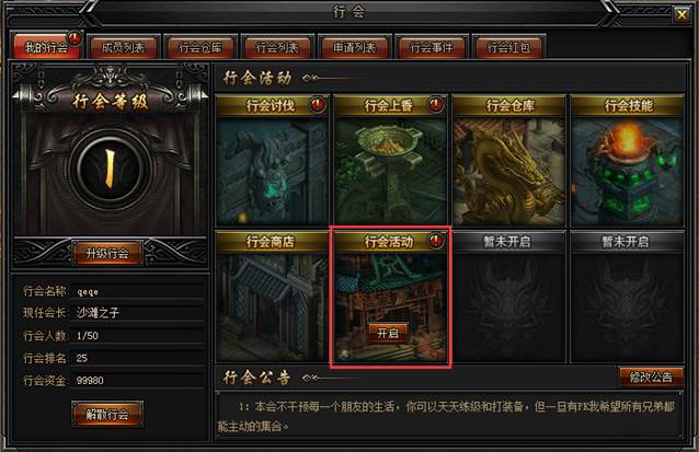 会长可以在行会活动开启行会副本-行会秘境