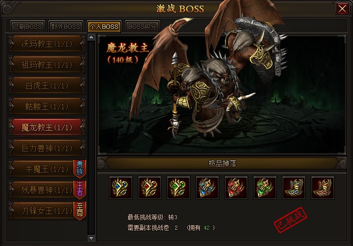 特权BOSS奖励更为丰厚,开通相应特权,才能进入对应的副本进行挑战