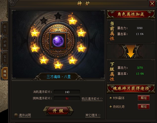 魂珠可极大增加暴击和暴击力