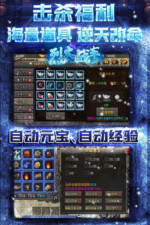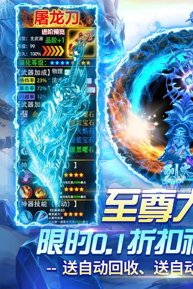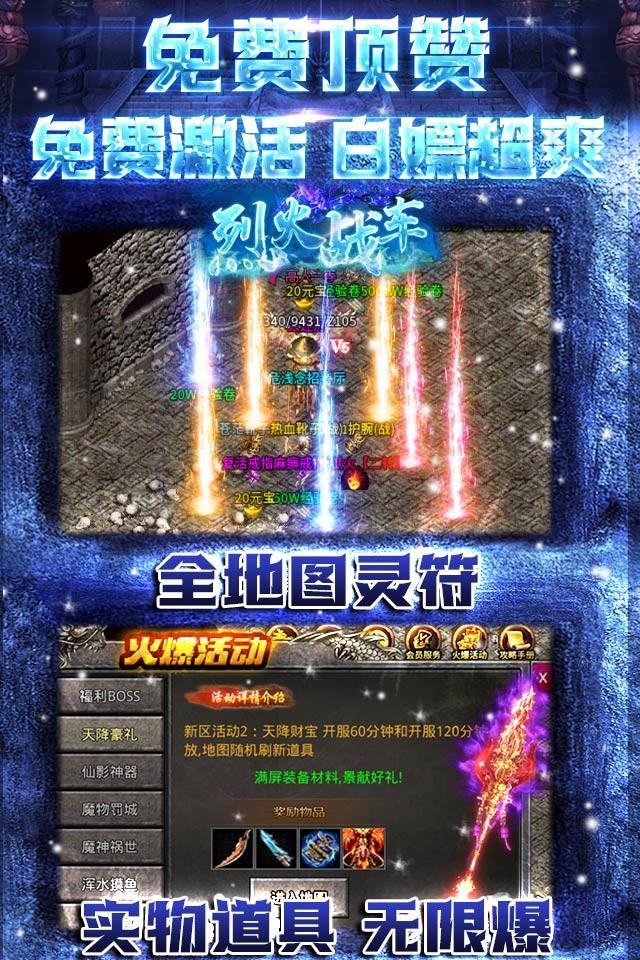 烈火战车(冰雪1折购)真白嫖!无限爆灵符!更有至尊大礼包一折购! 游戏画面清晰精致打击感实足。完美还原冰雪,原汁原味复刻传奇核心玩法,多人BOSS夺宝,血战沙城PK,还原经典传奇场景。击杀怪物可领取海量道具,本服无任何绑定限制,自由交易,上线免费送自动挂机、 自动拾取、自动分解,一切全靠爆游戏中获得的灵符,装备,材料,打怪均能掉落!