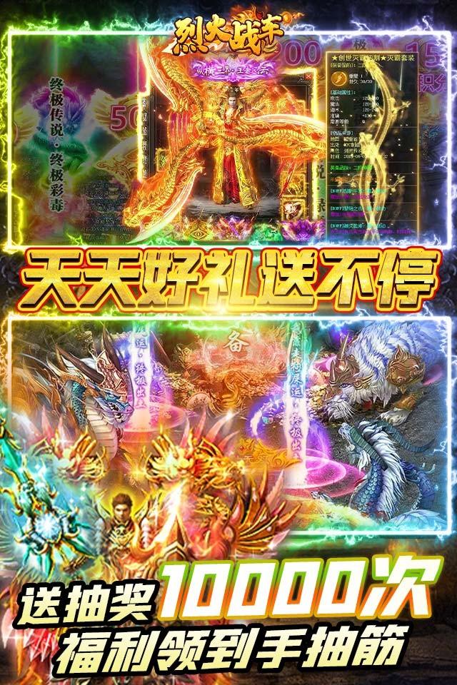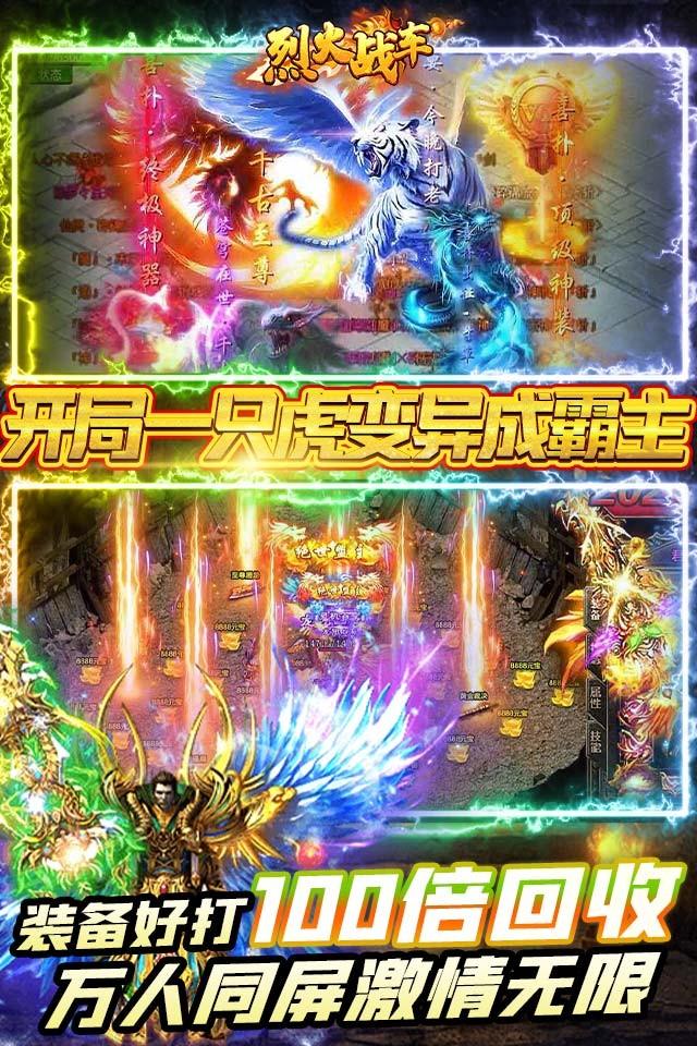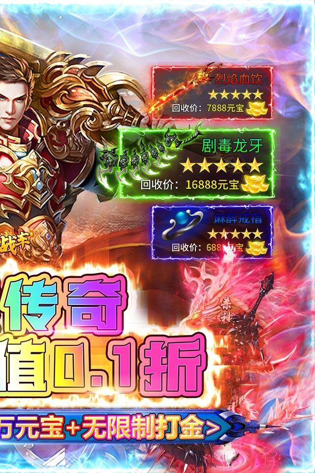 烈火战车(首续0.1折)是一款经典的传奇动作手游,游戏继承了传奇的核心玩法。游戏承诺首续充全部永久0.1折!开局vip15免费送,上线送10000充值卡,绝版称号“打怪爆一切”,888万元宝、酷炫时装套、送终身赞助特权!充值全部0.1折,所有的直接买买买!七彩变身机甲,七彩白虎,时装坐骑总有你喜欢的一款!超帅的热血神兵神甲,全玛法大陆最帅的男人,等你来战!