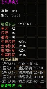 战士的玄铁摄魂刀,中毒闪避:+20%,生命恢复:+20%,魔法恢复:+20%,中毒恢复:+20%