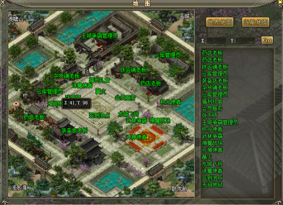 3、单击右侧地图的NPC名单便可快速移动到NPC位置,也可输入坐标到达指定的坐标地点。