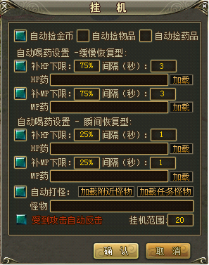 三.设置好挂机后,点击确认,就可以立即实现自动打怪了。