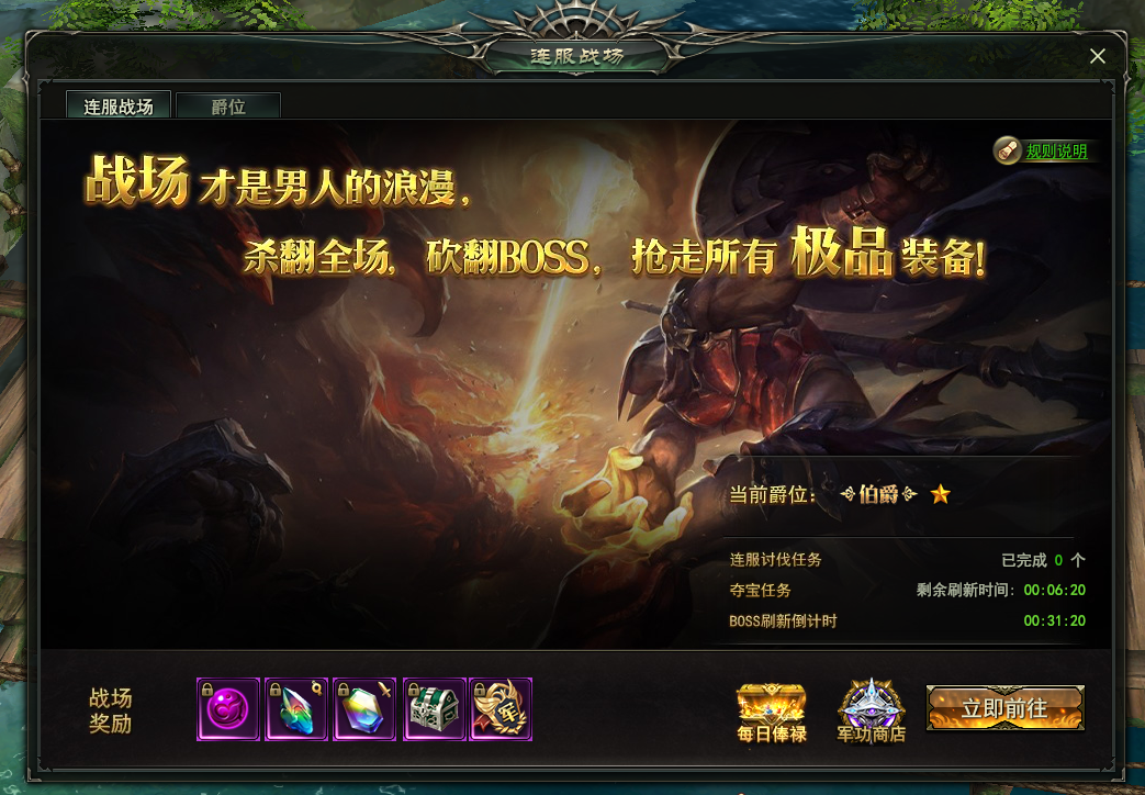 玩家达到一定等级后,可进入连服战场,与其他服玩家进行争夺。