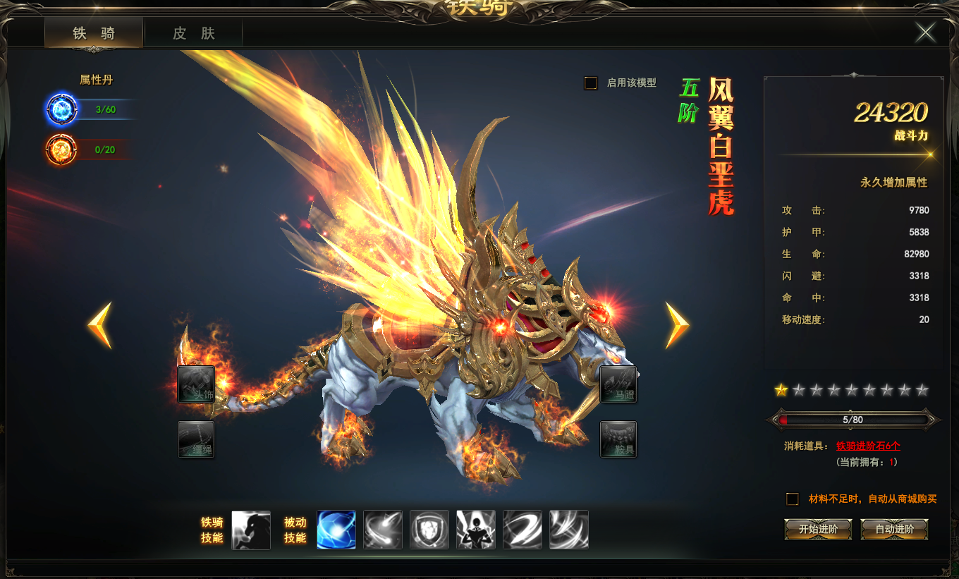 铁骑强化消耗铁骑进阶石,铁骑激活后还可消耗皮肤道具激活其他皮肤。