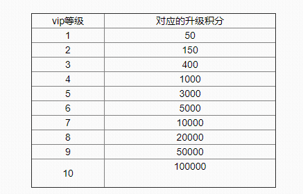 vip等级 对应的积分?