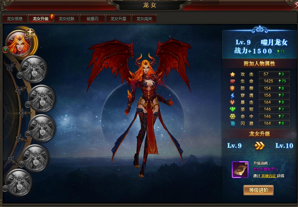 - 提升龙女等级,将大量增加人物属性,使人物获得大量战力。