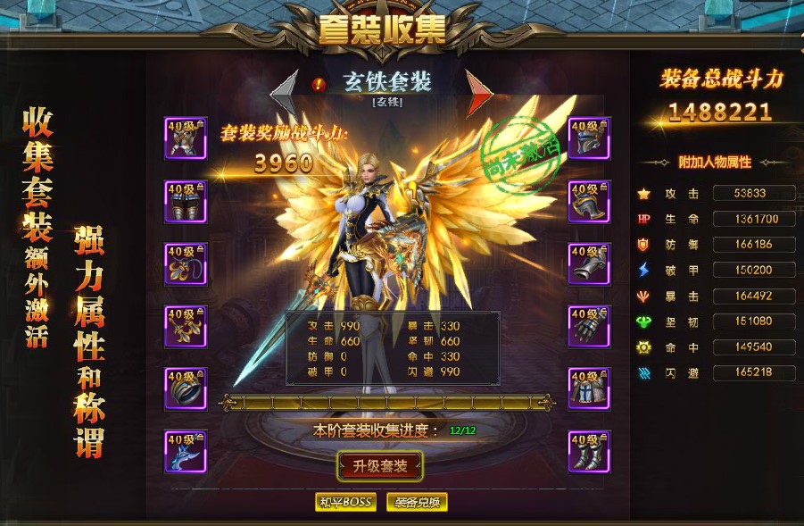 1. 收集套装达标可激活获得额外强力属性,让你有效提升人物战力。