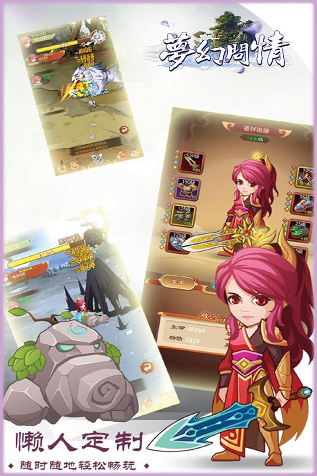 梦幻问情(上线送元宝)是新一代的RPG放置类冒险游戏,这款游戏继承了放置类的优秀特点,满足玩家在闲暇时间进行战斗游戏,让玩家随时随地都能轻松休闲的体验游戏战斗。游戏拥有丰富的首领挑战,无尽深渊和生动的幻境之巅,你还可以组建公会,参与实时资源抢夺。游戏画风卡通充满趣味,游戏人物、宠物还可以获得各种特色皮肤,快给你和宠物换上精美的皮肤,带领他们去参加战斗吧!