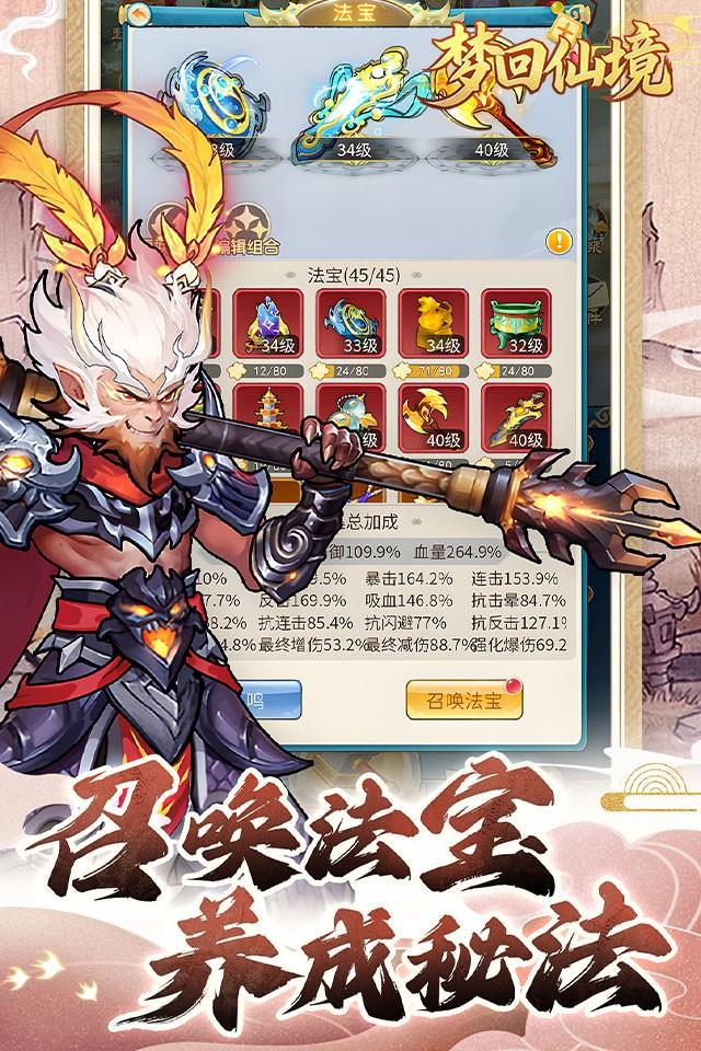 《梦回仙境(0.05折得道成仙)》是一款修仙题材的角色扮演养成游戏,玩家可以在游戏中自由探索属于自己的仙侠世界,养成属于自己的灵宠、法宝等。游戏整体画面精致、明亮艳丽,玩法轻松无压力,游戏操作也十分简单易上手并可以自动游戏解放双手。