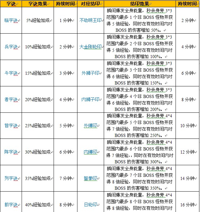 “杀阵系统”采用“九字真言”的形式表现,在角色信息的下方显示,分别为“临、兵、斗、者、皆、阵、列、前、行”。分为“字诀”和“结印”两种效果。
