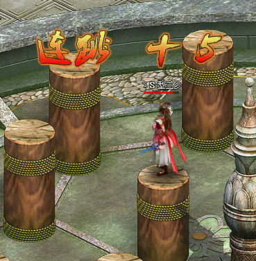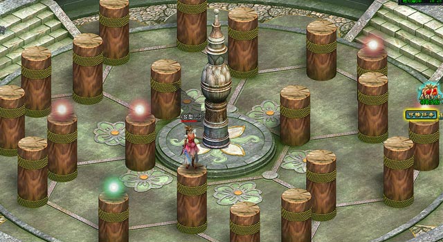 轻功副本一共由21根木桩搭建成梅花阵型,桩上每隔5秒会刷新绿色和红色的气灵珠。玩家需要不断的使用轻功来寻找绿色的气灵珠。