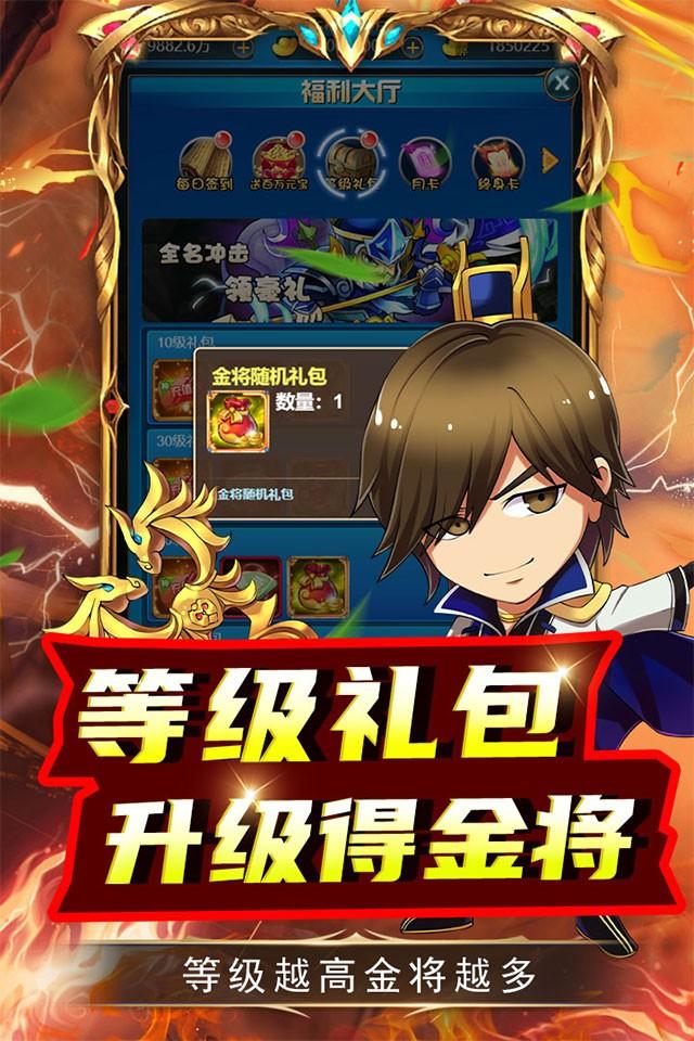 《名将萌萌消》是一款以三国为主题,结合中国传统神话故事创作的挂机类回合手游,在游戏中玩家将扮演一名主公,收服武将,培养上古神兽,制霸神话三国世界,赶紧来下载体验吧!
