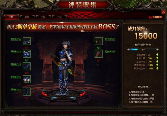 1. 神装收集是引导玩家提升装备能力的辅助界面