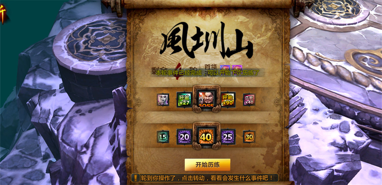 参与风圳山历练可从邯山城-副本大使寒沧子处进入,组队进入更高难度,获得收益更高,挑战Boss更有极高几率获得装备宝箱!