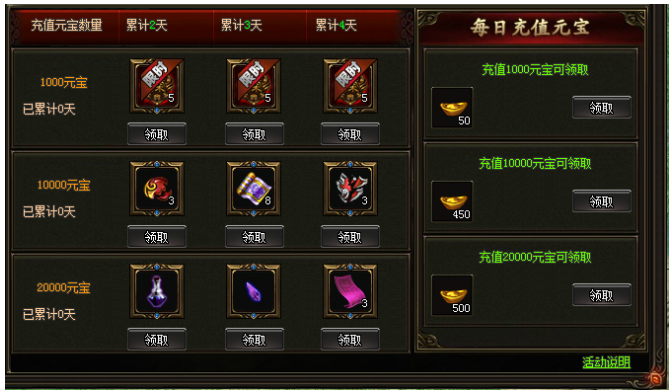 活动期间玩家每日消费达目标,即可领取相应的奖励