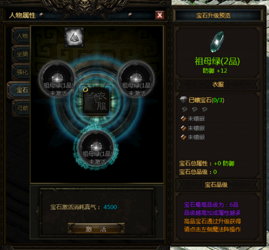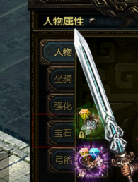 当玩家通过主线任务激活宝石系统后,可以点击角色后左边第四栏宝石来打开宝石页面。