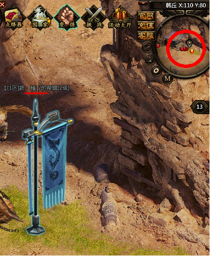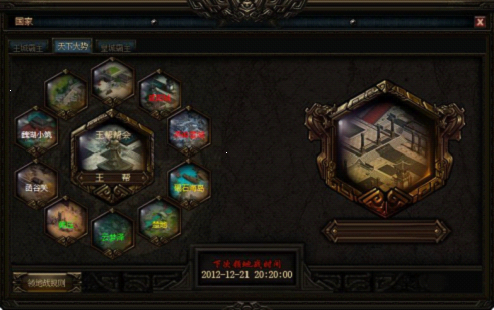 当领地战开启后,每个帮派的帮主转换到1线后可以在赵苑及以上地图内安插自己帮派的帮旗,帮旗安插后由全体帮派成员守护直到领地战结束而不被其他帮派的玩家砍倒,则可以获得该领地的占有权。当一个地图上已有帮旗之后,帮旗所在地会以橘色的点进行标注。