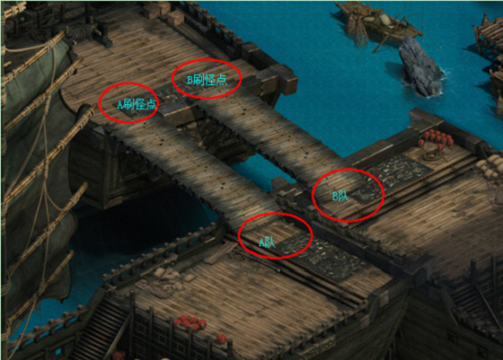a与b两队玩家会相互隔离,不能跳跃到对方的船上,但能使用技能攻击对方,以达到快速消耗对方有生力量并快速结束副本的目的;