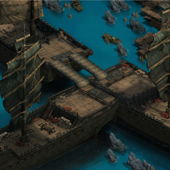 当排队达到8名玩家时可以进入副本,系统会将玩家分为4V4的2个小队,分别位于左右两船的船头位置;