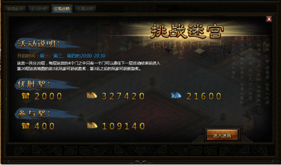 迷宫为单人挑战副本,共有20层。通过活动面板传入。
