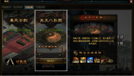 角色达到40级之后,便可以在挑战面板中看到先天八卦图副本