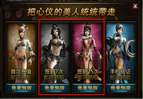 签到次数达到一定量,还可以获得传奇美人,她们只能通过签到获得: