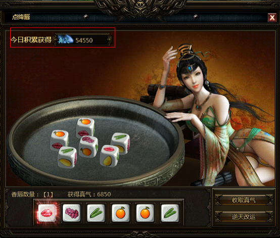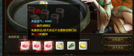当出现"红唇"的时候,可获得6000点真气,每次最多可获得36000点真气