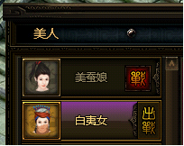 已经处于出战状态的美人,会在美人界面左边的列表中有特殊显示“”。