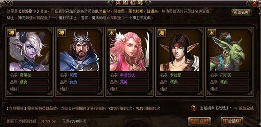 招募方式:玩家可在NPC酒店老板娘处打开招募英雄界面。