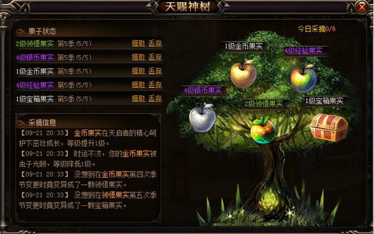 果子成熟一次需要30分钟,共分5个变异阶段,每日有摘取次数限制。