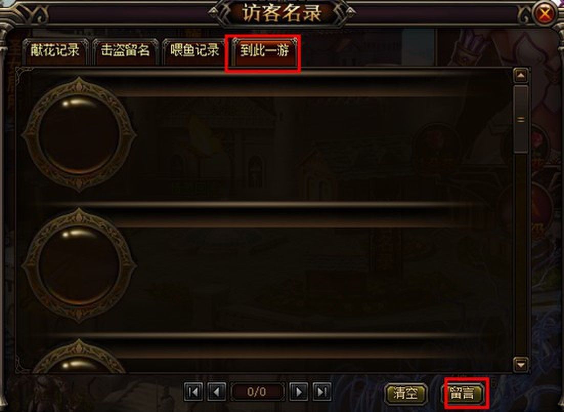 访客是游戏中为玩家提供玩家交互功能。玩家可以在访客中“到此一游”面板给好友留言。当好友上线之后即可看到留言。同时,你也能看到有谁来过你的城堡。