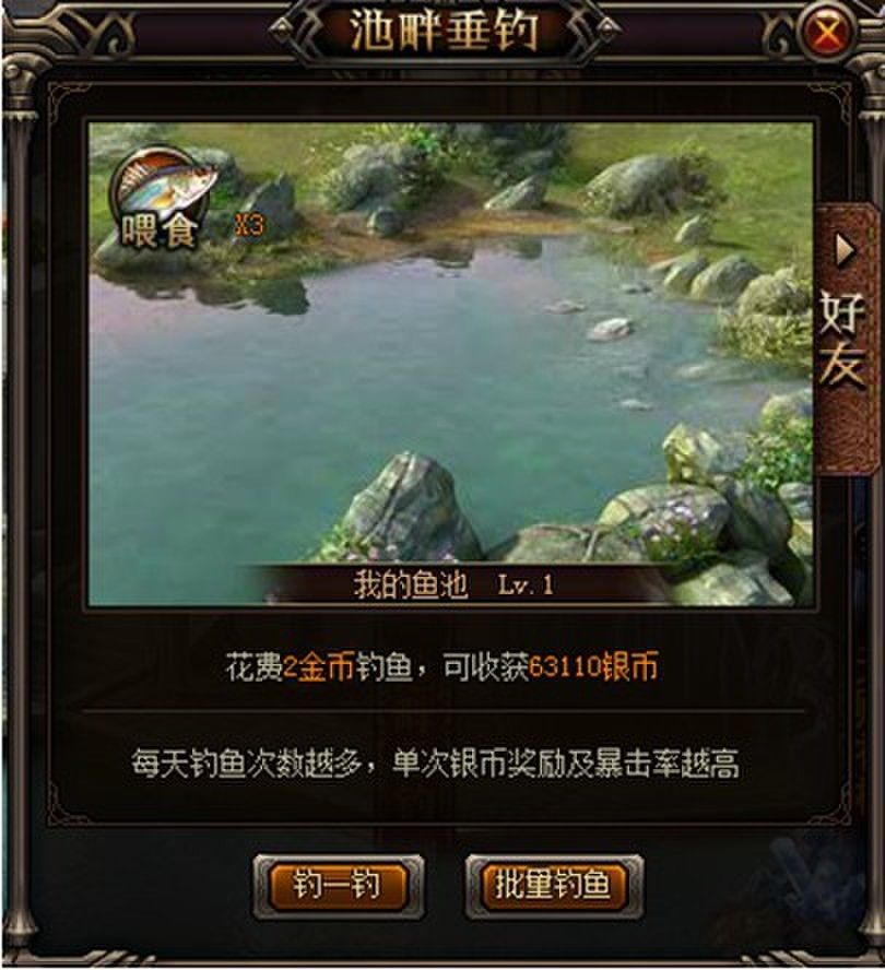 每次池畔垂钓有一定几率获得双倍银币奖励。