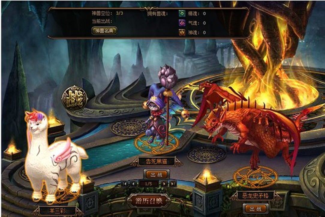 熟悉西方神话的玩家一定会对西方神话中的那些强大的神兽记忆深刻,它们将会出现在《骑士战歌》中和玩家一起战斗。打开神兽面板,点击“游历召唤”即可进入“神兽召唤”流程。