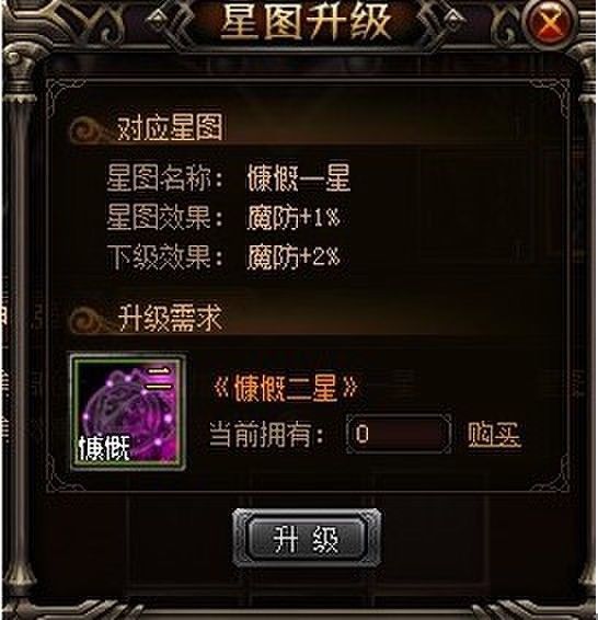 4、 在满足升级需求,即拥有相应等级的星图卷轴的前提下,点击“升级”按钮即可。