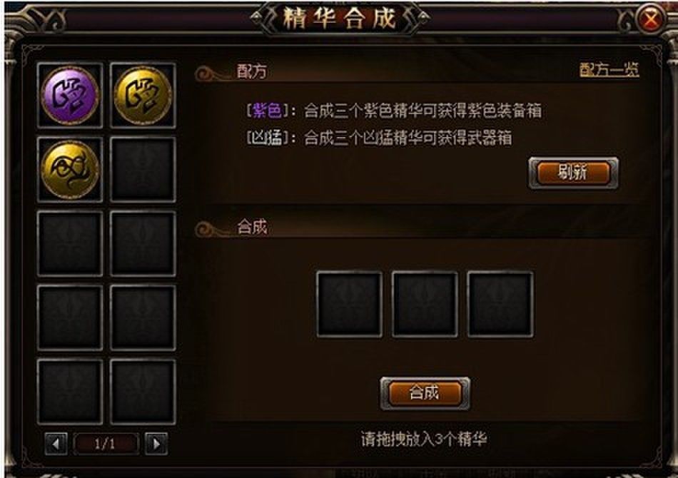碎片合成:在击杀了3只精英怪之后,就可以进行一次合成。击杀记录满足任意碎片配方时,点击合成可获得装备宝箱。若碎片配方第一排为“紫色品质碎片”或者第二排为“凶猛类型碎片”,那么连续击杀3只紫色残暴的精英怪,能够得到最大化的奖励。