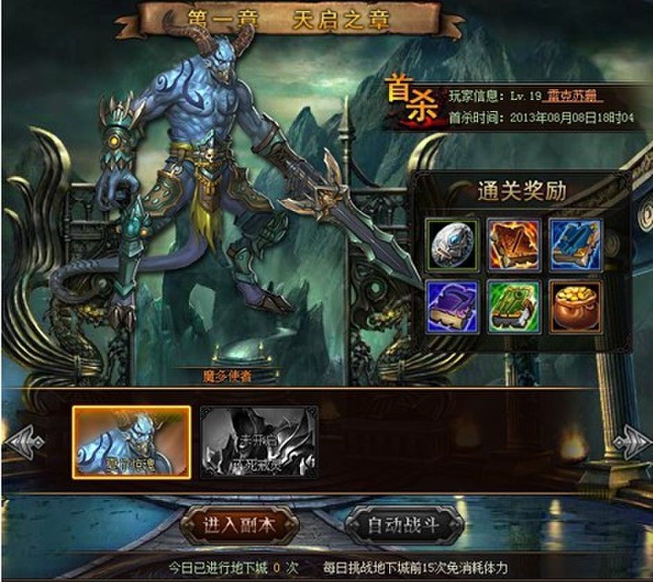 地下城奖励:显示本章节地下城的奖励,以及可能会掉落的物品。