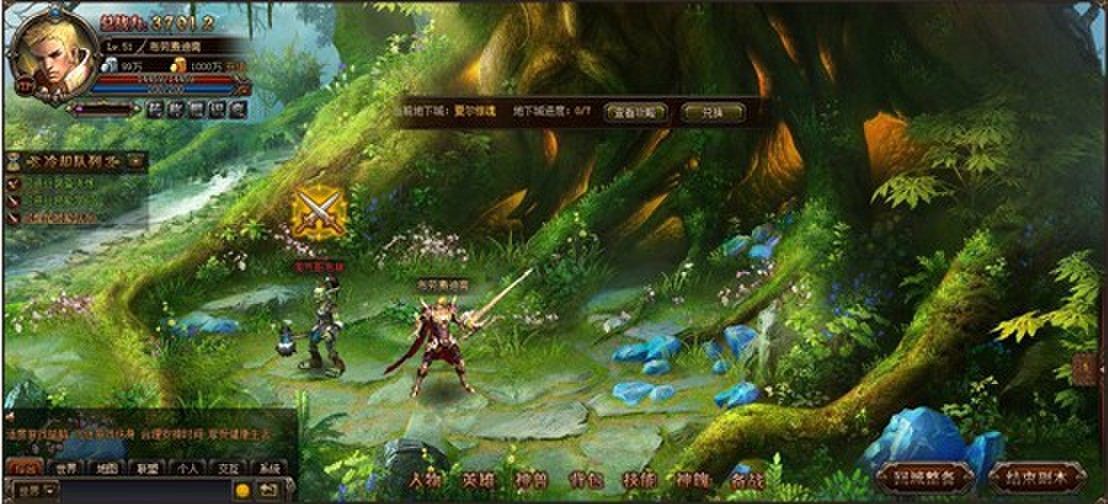 状态栏:玩家可以随时在地下城进行人物加点、招式升级、英雄与神兽的培养、调整备战、打开包裹更换装备、使用药品等操作。状态栏囊括了这些内容,可让玩家不用切换地下城场景。