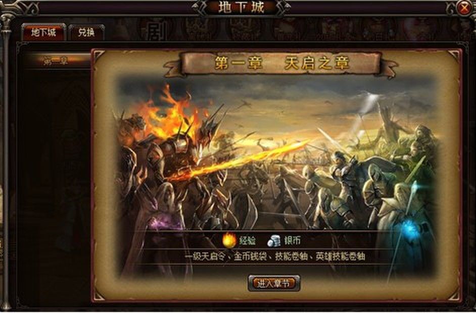 地下城章节:当前开启的地下城章节,可点击选择需要进入的地下城章节。只有完成了主线剧情任务、通过了前一章节(第一章除外)才能进入下一个章节。