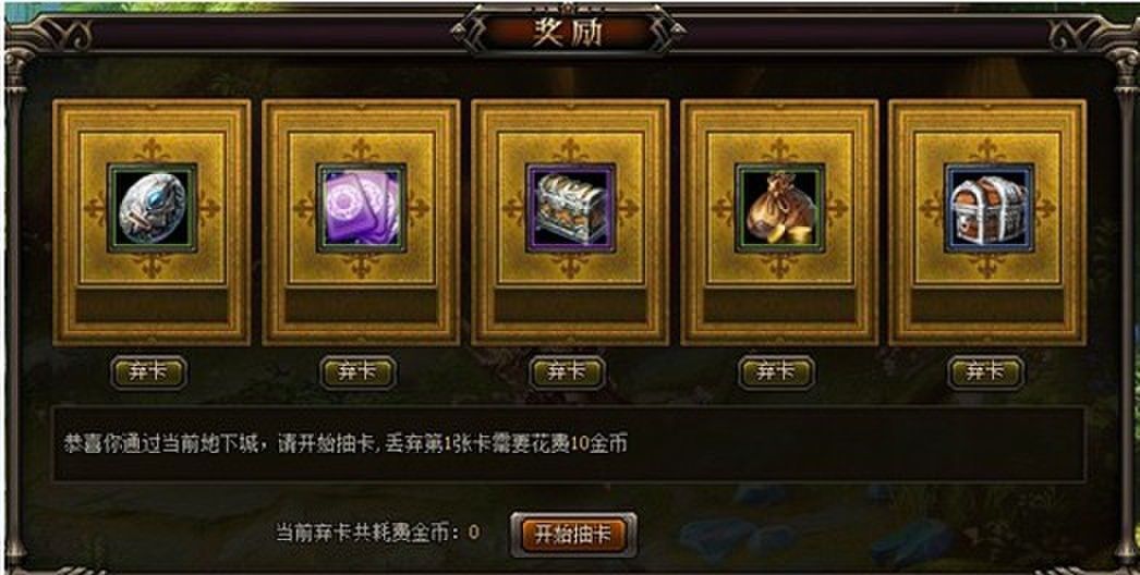 战胜所有地下城怪物后,会出现地下城奖励界面,可从中选择一份奖励,完成该地下城。