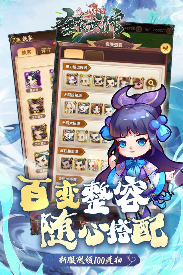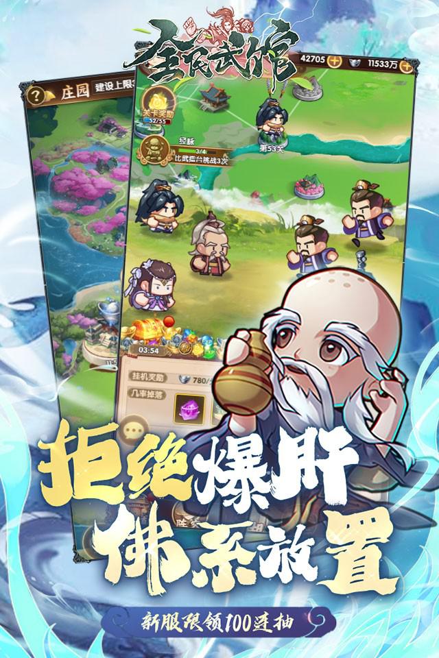 《全民武馆》是一款挂机休闲的武侠游戏,每天只需花少量时间,即可从无名小卒进阶成为一代武林盟主,佛系放置无时无刻都在变强。你可以创建一支队伍,根据侠客属性随意搭配,挑战各路侠客精英。 侠客变强,可以通过培养侠客,突破,觉醒,缘分,绝学众多玩法,使得侠客一步步变强,体会到成为大侠的乐趣;获得绝世宝物,可以在武林圣地里获得,也可以在天机阁寻得宝物,还可以在琅琊福地,习得武林绝学;