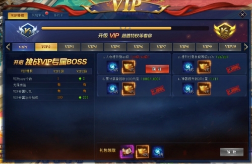 完成任务免费升VIP 等级,在游戏中能享受超多的特权,大幅度提高玩家战力。