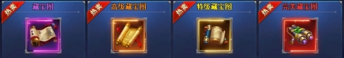 根据可使用等级及珍惜度,藏宝图分为:藏宝图、高级藏宝图、特级藏宝图、完美藏宝图