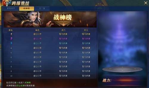 为了鼓励大家竞争,跨服竞技特别设立了“战神榜”