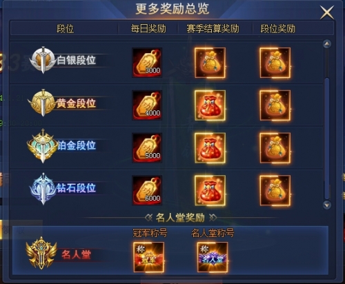 根据玩家的段位,每天还可领取一定的奖励