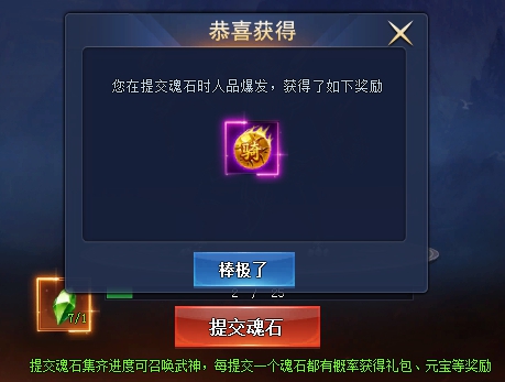 提交魂石时还有概率人品爆发获得额外奖励